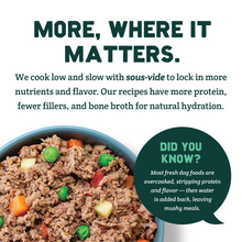 Our fresh food is gently cooked sous-vide to lock in nutrients, boost flavor, and eliminate harmful pathogens. With pet health issues like obesity and cancer on the rise, more research shows the benefits of fresh food and the risks of many highly processed commercial diets. Whether your dog is picky, has health concerns, or eats anything, we’ve seen the difference fresh food can make—starting with our own pups.