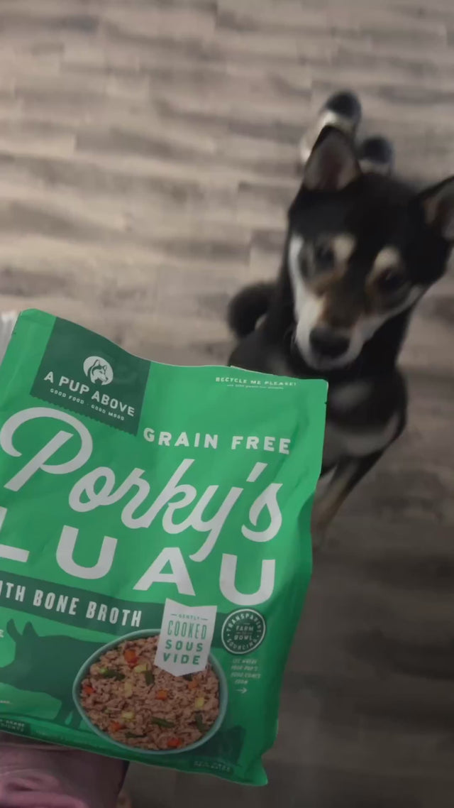 Pork, pork liver, sweet potatoes, pork bone broth, green beans, pineapple, turmeric, thyme, parsley, APA nutrient mix.
